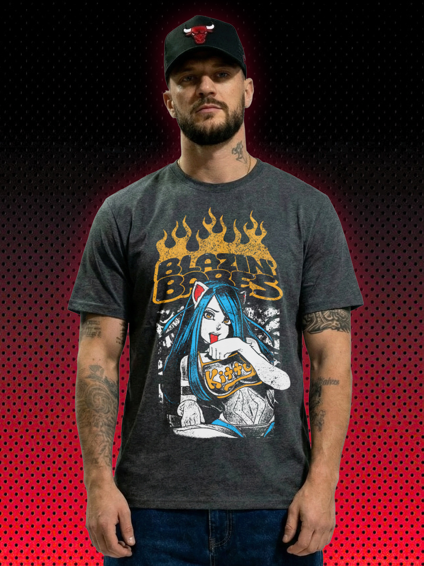 Feuer frei für die wildesten 90er-Vibes! Dieses krasse Retro Anime Shirt zeigt eine freche blaue Catgirl mit lodernden Flammen, Katzenohren und dem ikonischen „Kitten“-Top – genau der Style, der dich damals bis tief in die Nacht vor dem Anime-Bildschirm gehalten hat. Für jeden Mann, der die 90er Manga-Ära und die pure Rebellion der alten Spielhallen noch im Blut hat. Weicher Premium-Baumwollstoff, perfekter Used-Look – dein täglicher Schuss 90er Nostalgie.