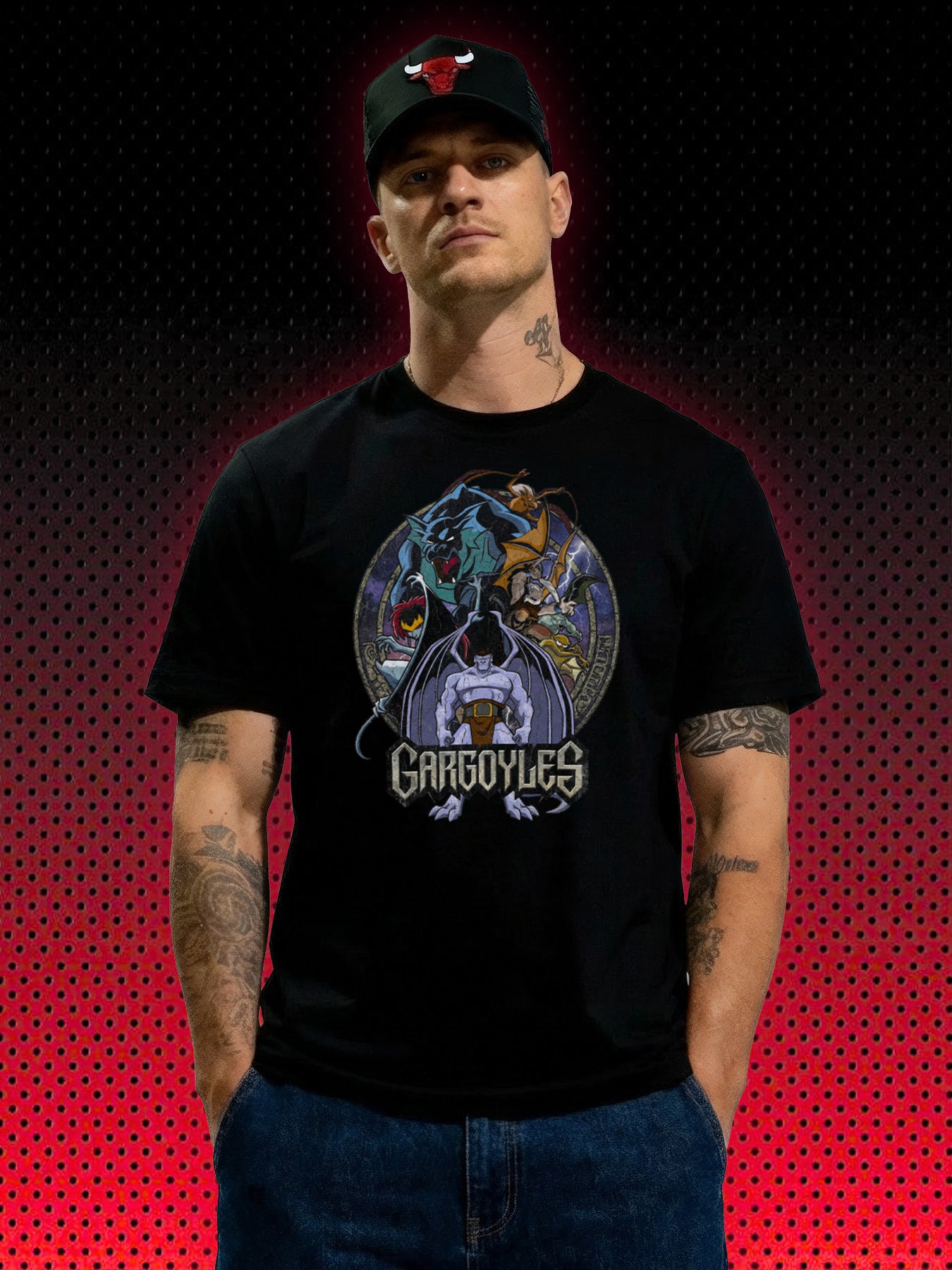 Zieh’s an und du hörst wieder die epische Intro-Musik und das Stein-zu-Fleisch-Knacken. Gargoyles – Beschützer der Nacht… und deines Styles! 🦇🌙
