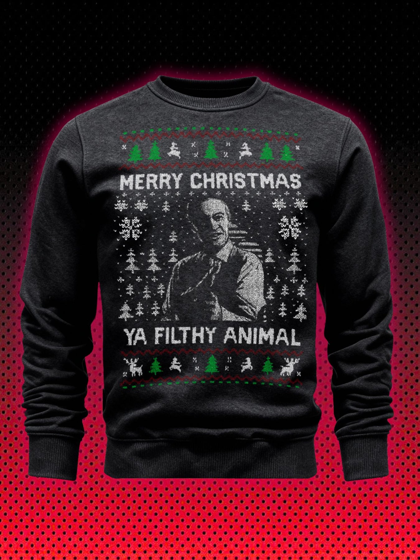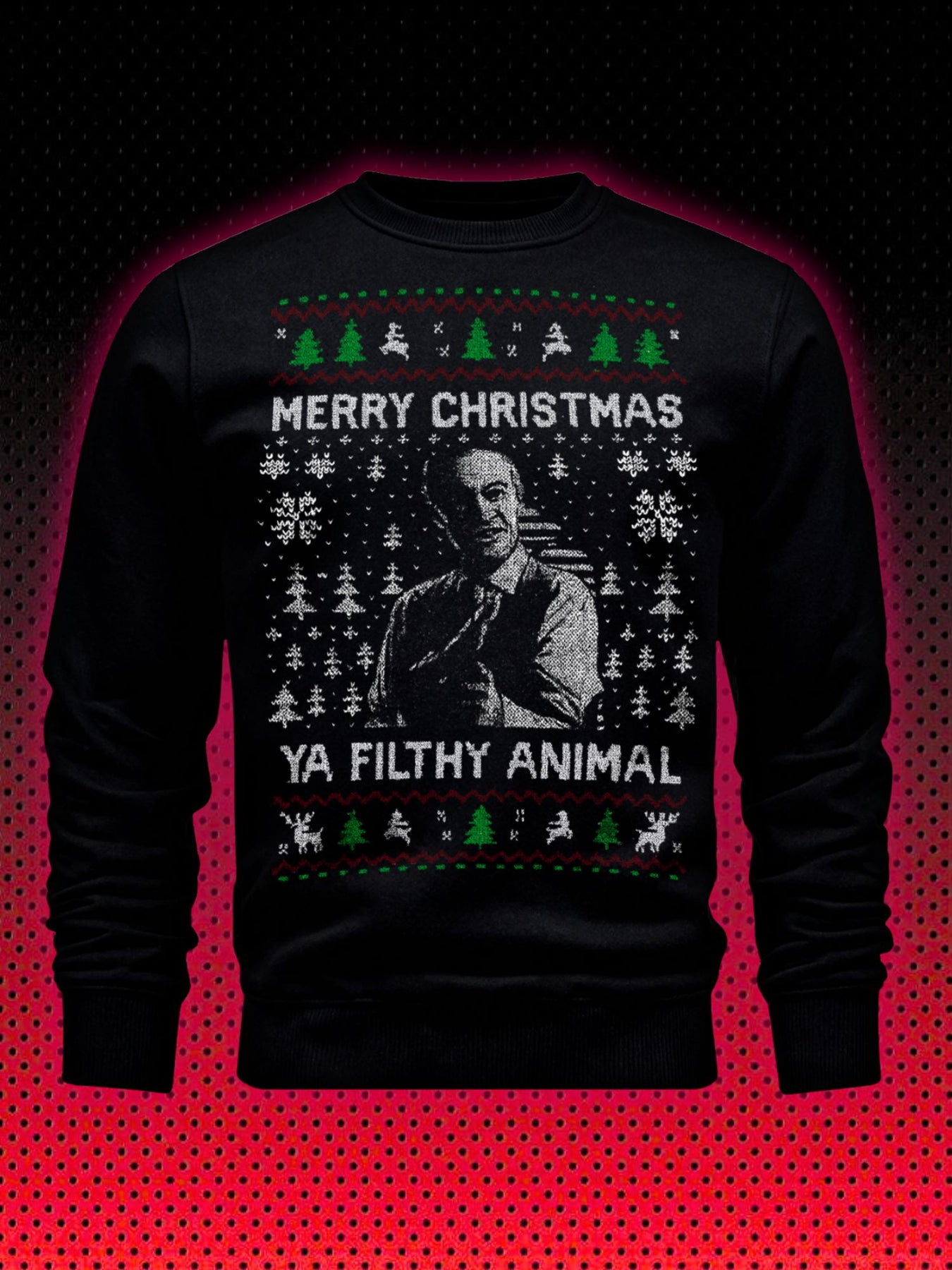 Mit dem "Ya Filthy Animal" Christmas Sweater zeigst du der Welt (oder wenigstens deiner Familie beim Festessen), dass du Weihnachten ernst nimmst – aber nicht zu ernst.